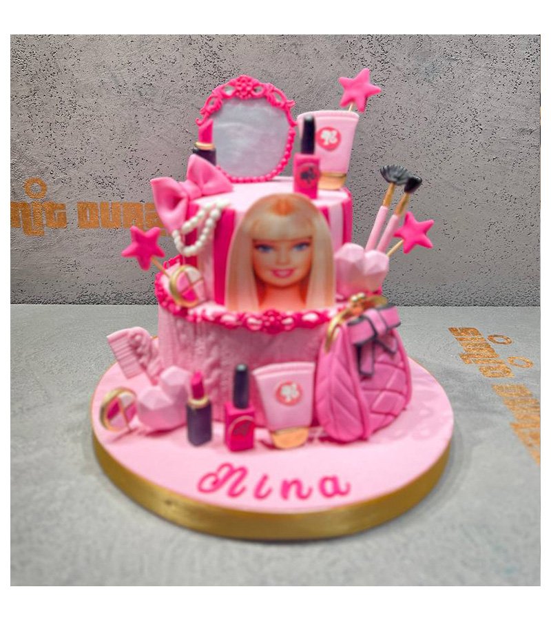 Barbie hayranı küçük prensesler için özel tasarlanmış bu pasta, Barbie’nin ikonik pembe temasını ve makyaj aksesuarlarını içeren detaylarla süslenmiştir. Renkli ve gösterişli bu pasta, kız çocuklarının hayal dünyasını yansıtır.