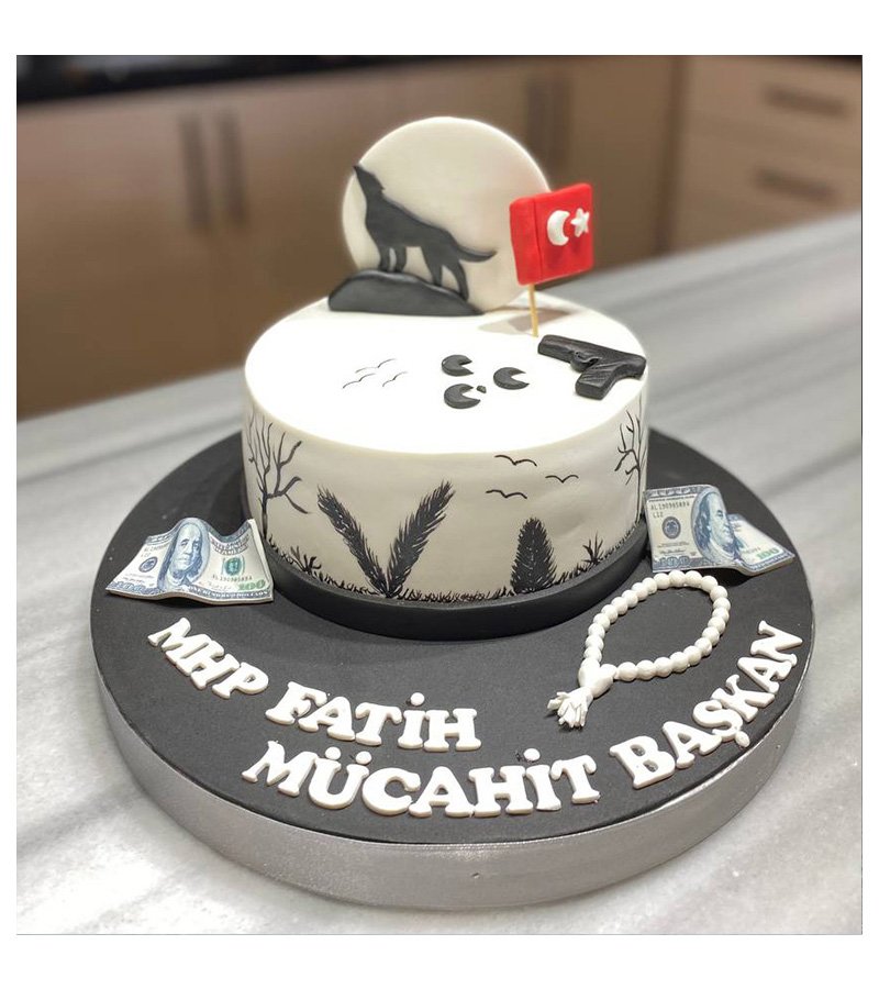 Bozkurt figürü ve Türk bayrağı ile süslenen bu pasta, milli ve lider ruhu yansıtmak isteyenler için tasarlandı. MHP’ye gönül verenler için özel olarak hazırlanan bu pasta, anlamlı bir hediye olabilir.
