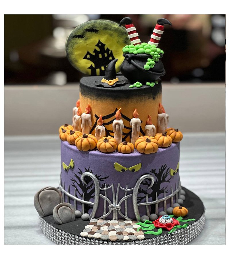 Korku evi ve cadı detaylarıyla süslenmiş bu pasta, Halloween ruhunu yansıtırken aynı zamanda lezzetli bir sürpriz sunuyor.